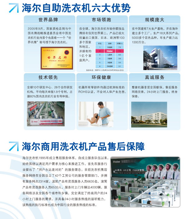 采用高品質海爾投幣洗衣機服務員工。 吳江市紫宇電器 研發&生產&總經銷 地址:江蘇蘇州吳江市華東商業城A區19棟 (江陵東路8號,蘇嘉杭高速吳江出口處) 電話:0512-60203418 13951128991 13913088110 網站: QQ:1063418303 657931769 投幣式洗衣機經營利潤分析表 投入數量 1臺 10臺 30臺 工作單價(元/次) 3 3 3 工作次數/臺/天 10 10 10 營業額/月 900 9000 27000 水、電費用/月 90 900 2700 純收入/月 810 8100 24300 純收入/年 9720 97200 291600 純收入/五年 48600 486000 1458000