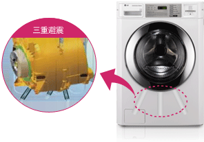 三重減震器 采用三重減震器,用于全方位地吸收和減少震動(dòng),從而達(dá)到靜音操作。 基于獨(dú)立測(cè)試,LG滾筒洗衣機(jī)和烘干機(jī)是同類(lèi)產(chǎn)品中最靜音的。
