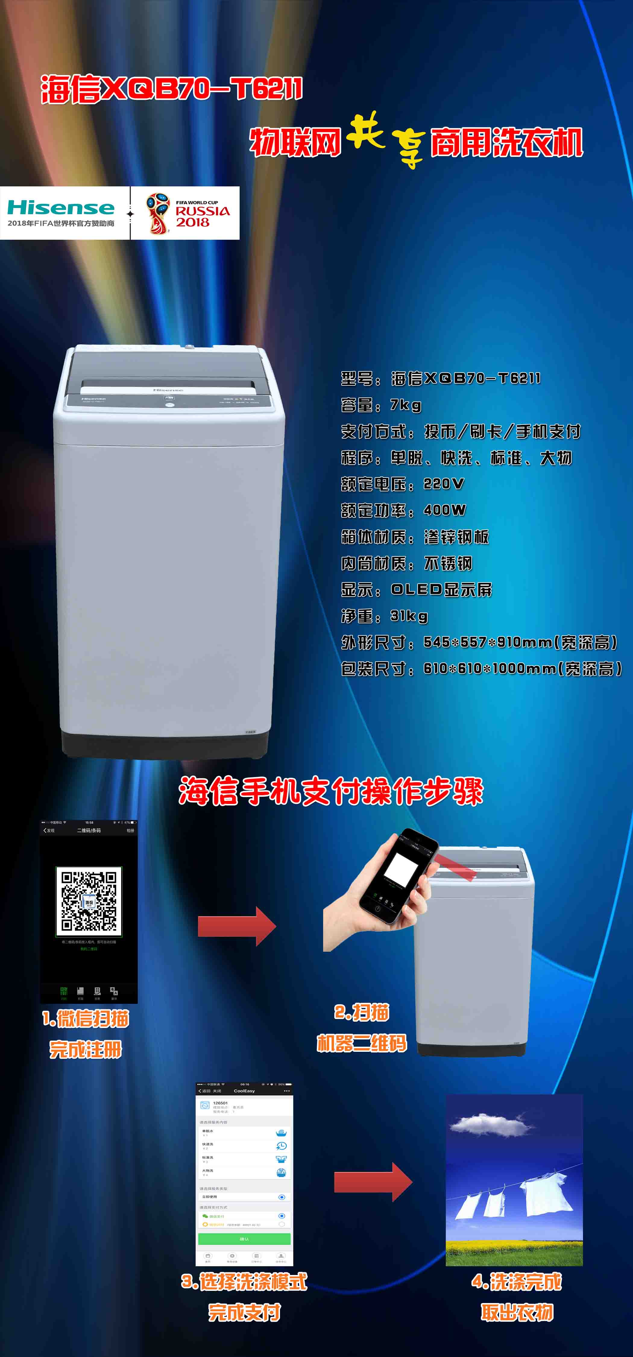 Hisense/海信 7公斤XQB70-T6211共享商用波輪洗衣機(jī)